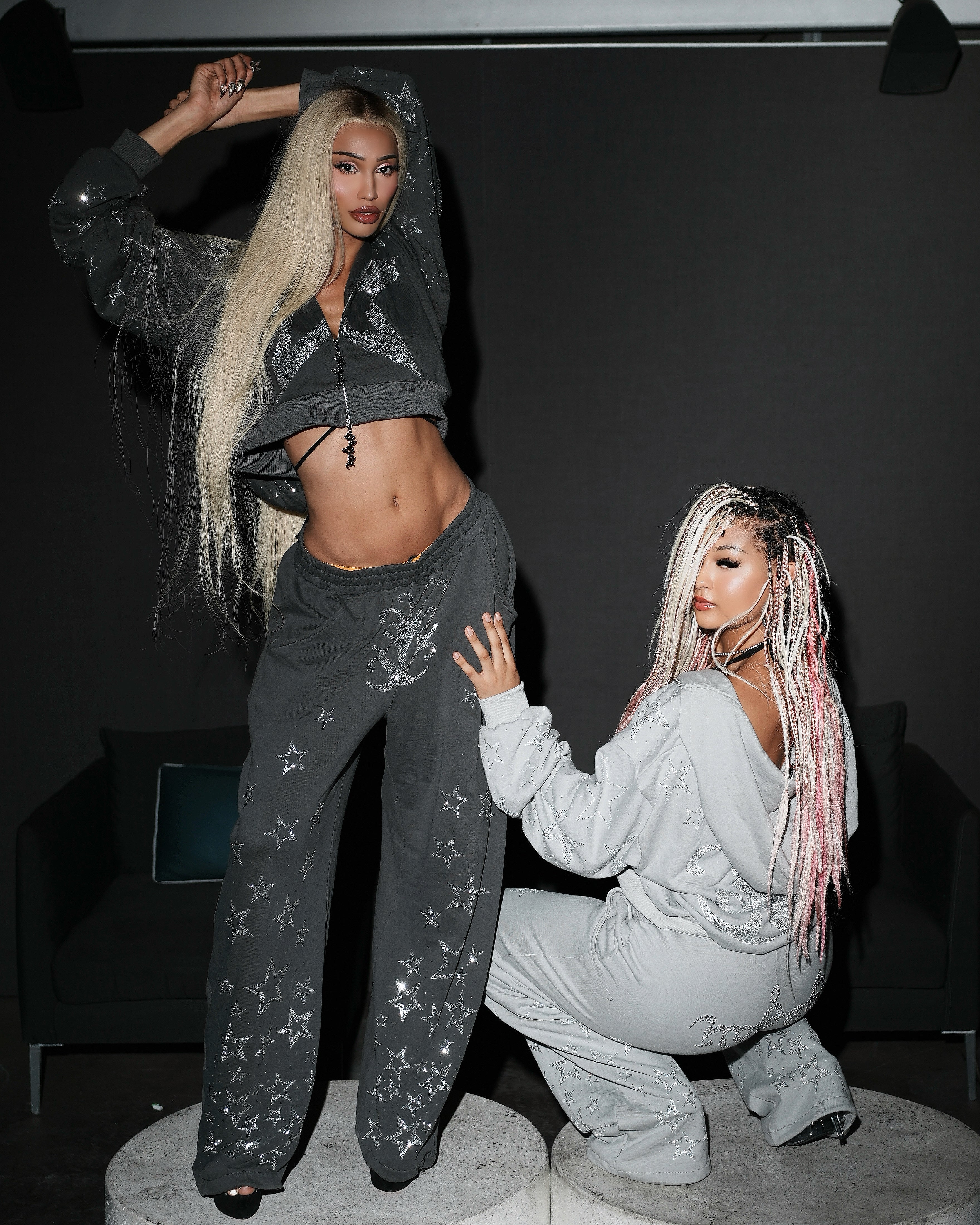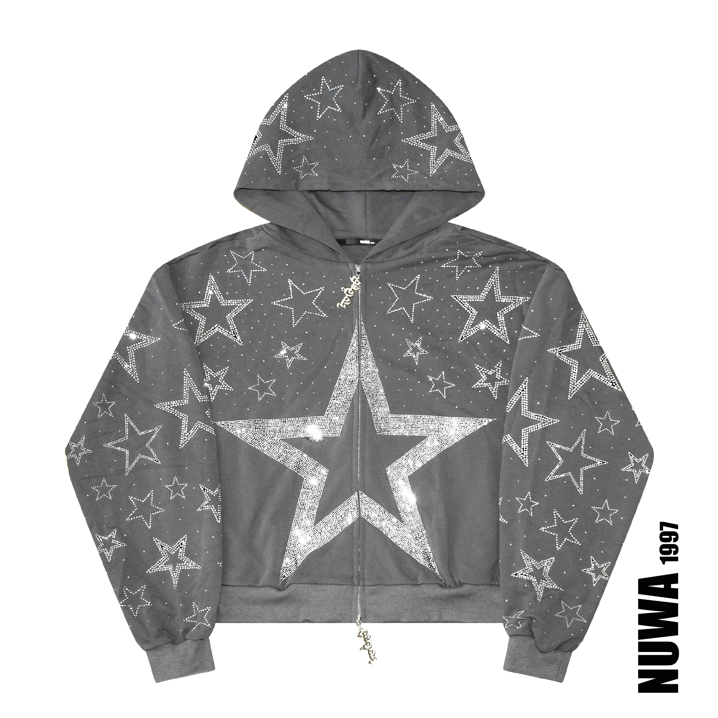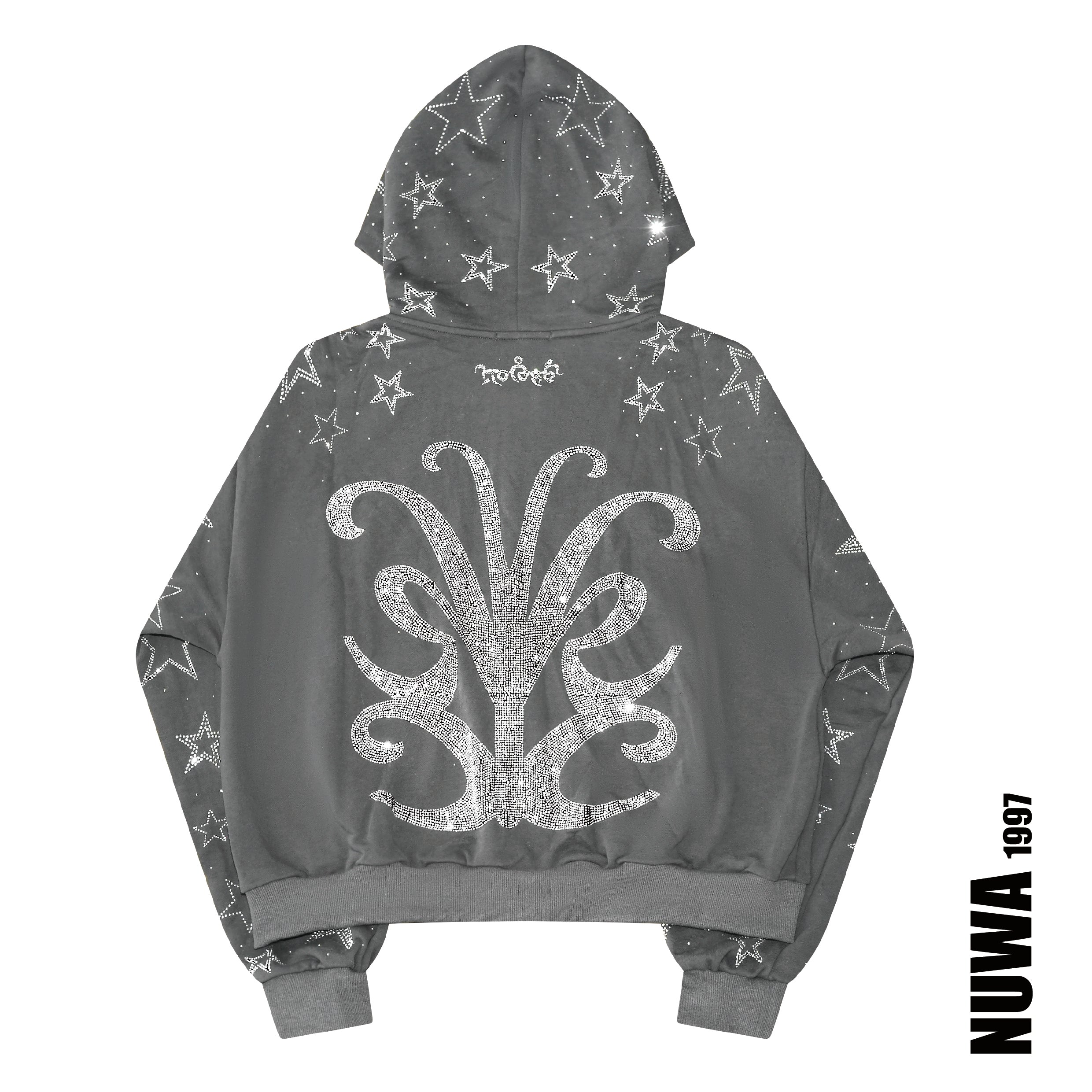 Ultra Oversized baggy fit rhinestoned zip hoodie & sweatpants set.