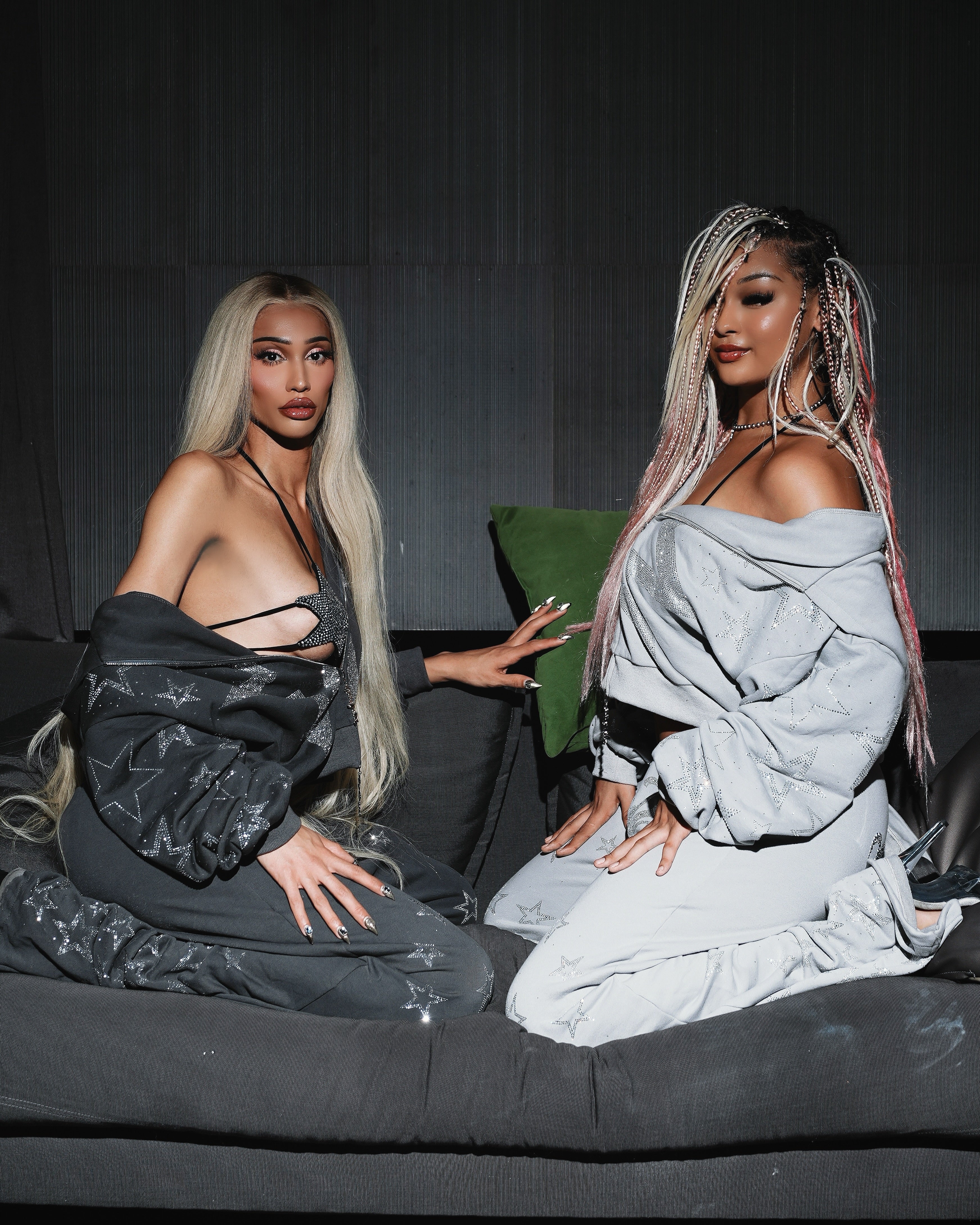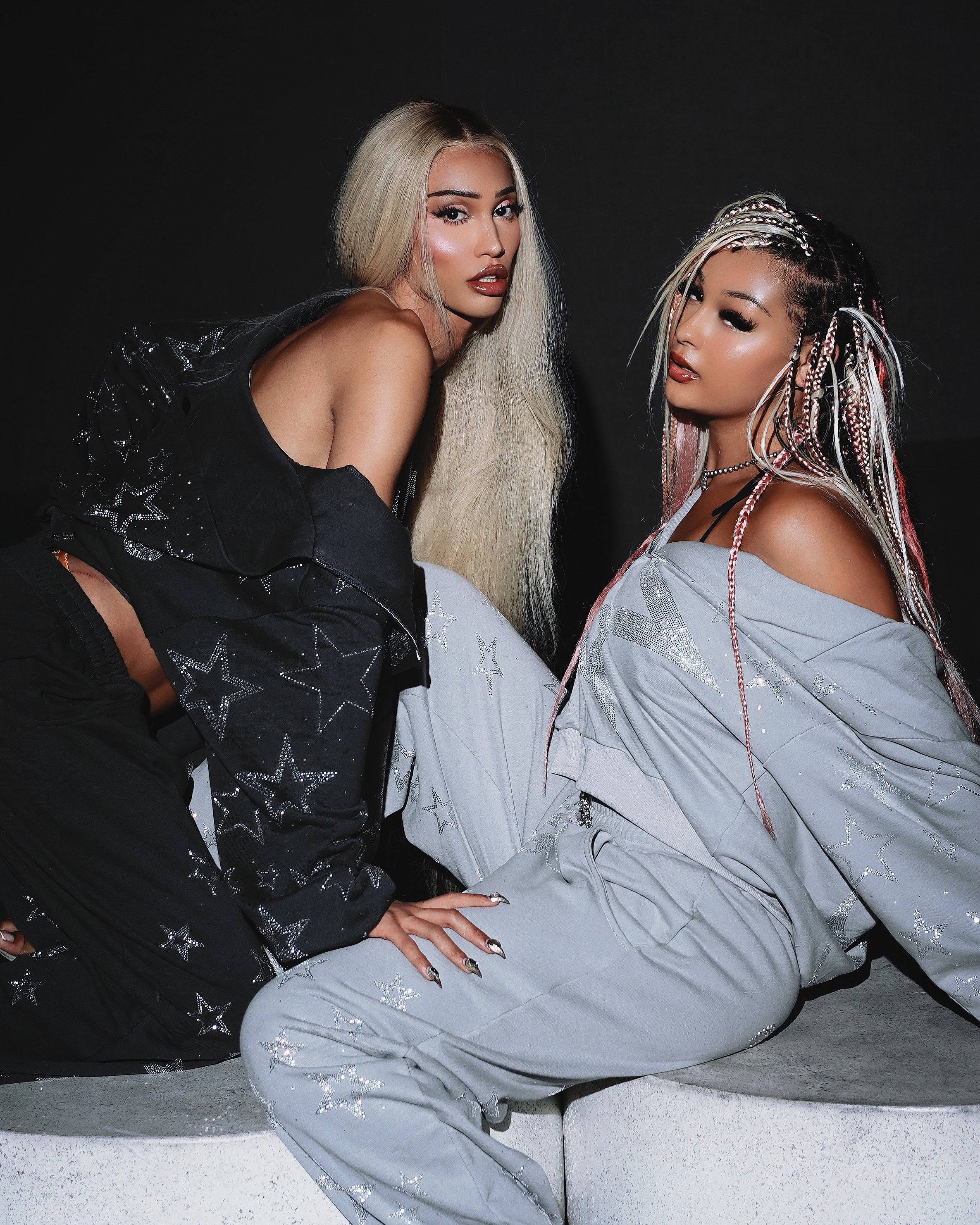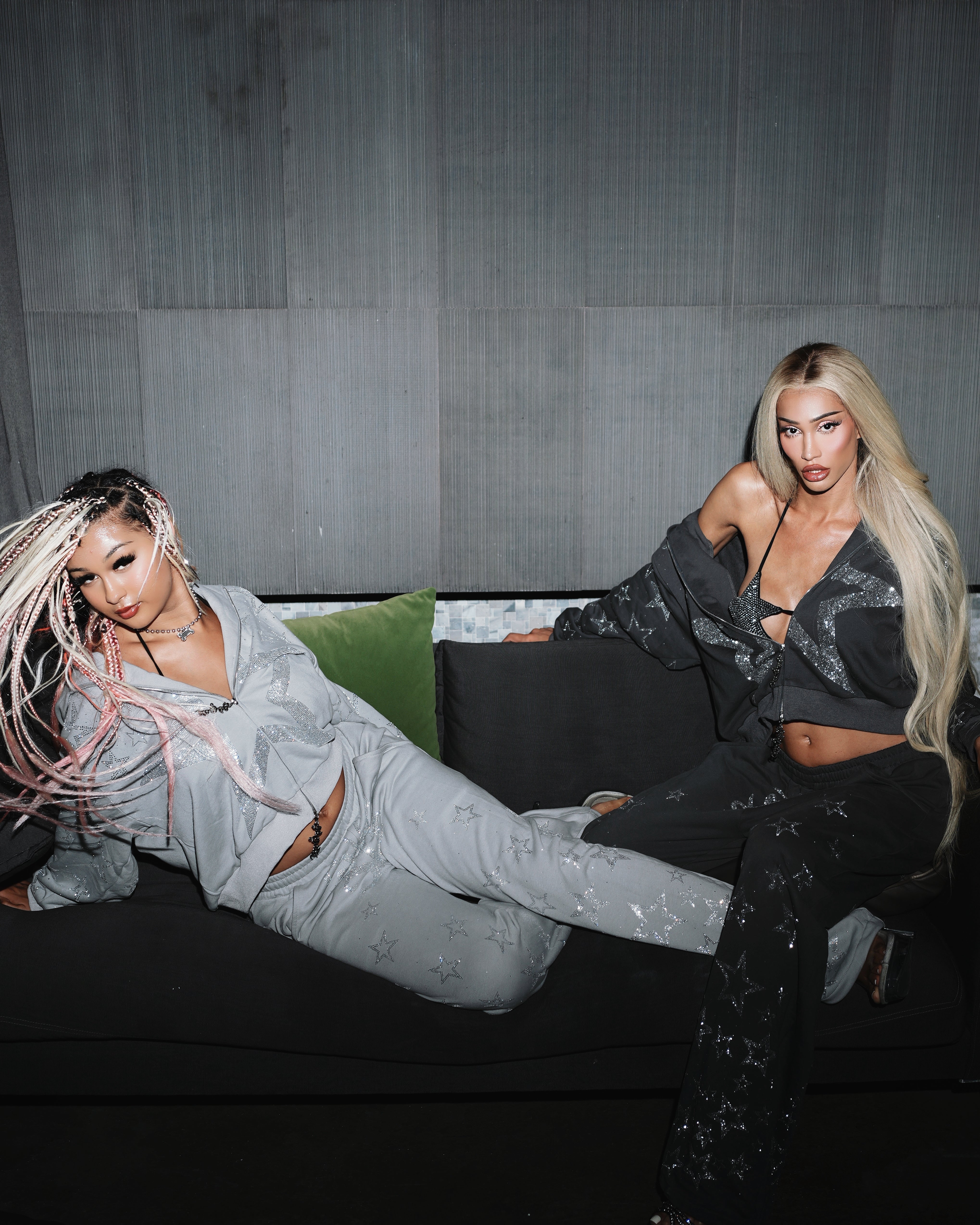 Ultra Oversized baggy fit rhinestoned zip hoodie & sweatpants set.
