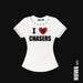 A soft, stretchy baby tee featuring our iconic I ❤️ CHASERS graphic.Form-fitting cut with comfortable elastic fabric for an everyday snatched look.Perfect to pair with mini skirts, jeans, or statement accessories.